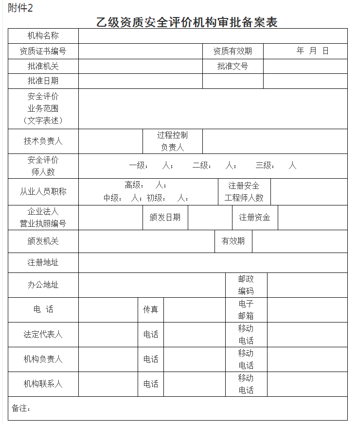 2.乙級資質安全評價機構審批備案表
