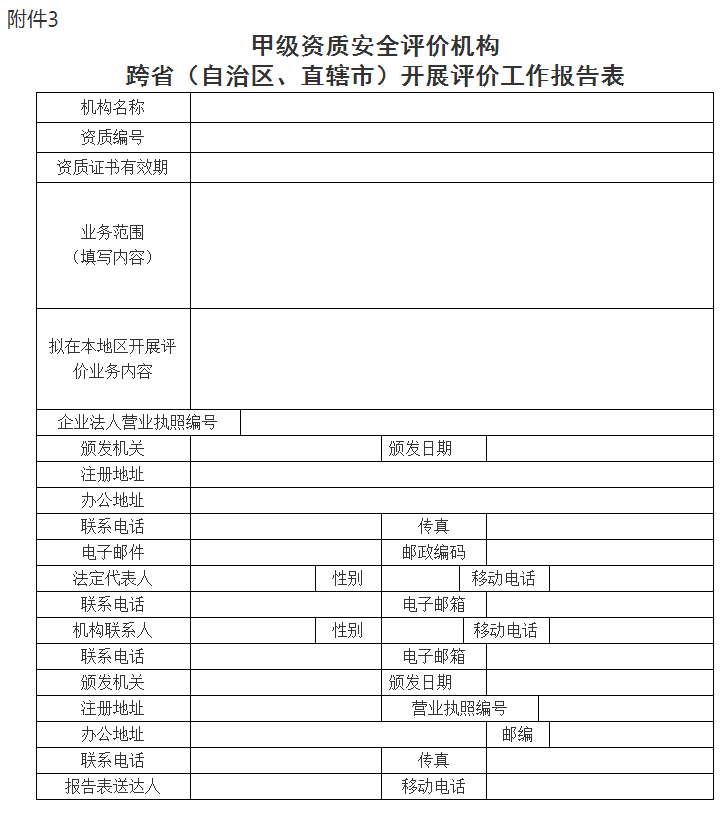 3.甲級資質安全評價機構跨省(自治區、直轄市)開展評價工作報告表