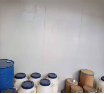 4物料區間未劃分擺放區域與物料名稱和安全周知卡 四樓粉劑車間:已劃分了區域和增加了產品名稱標示牌與安全周知卡
